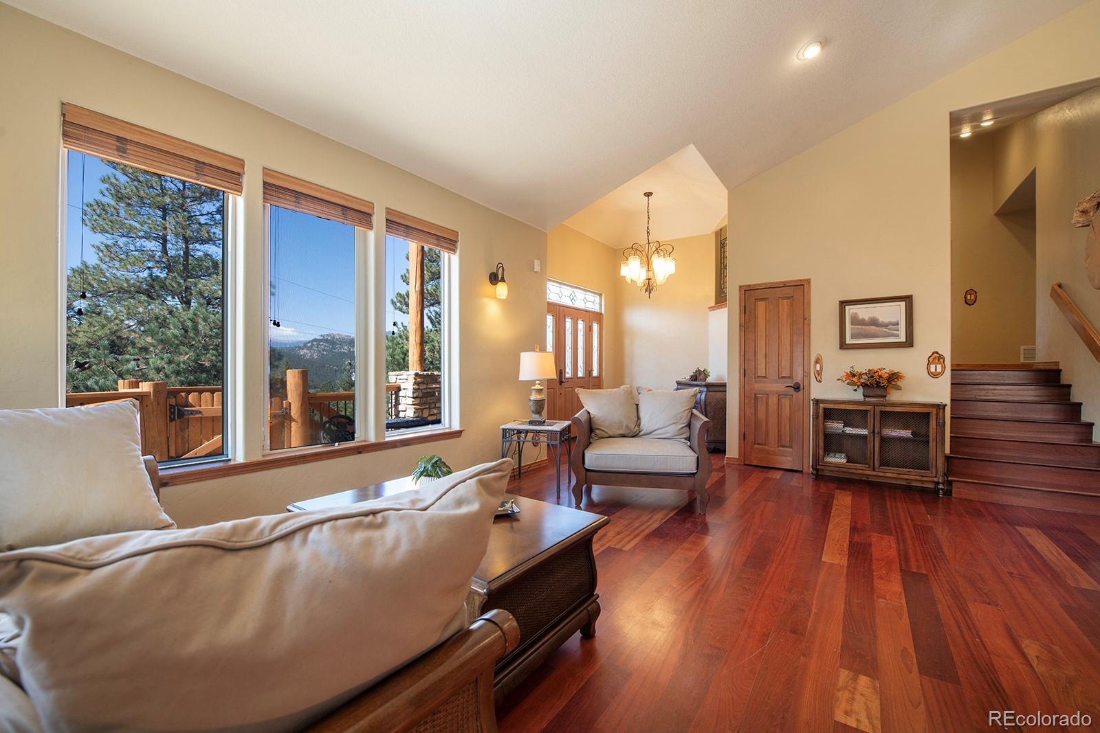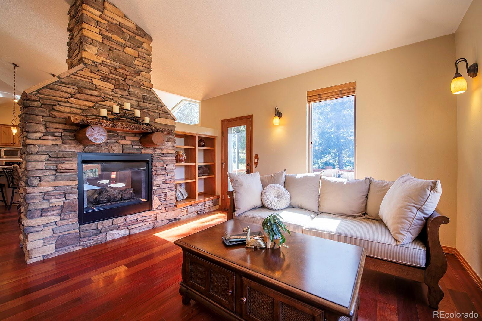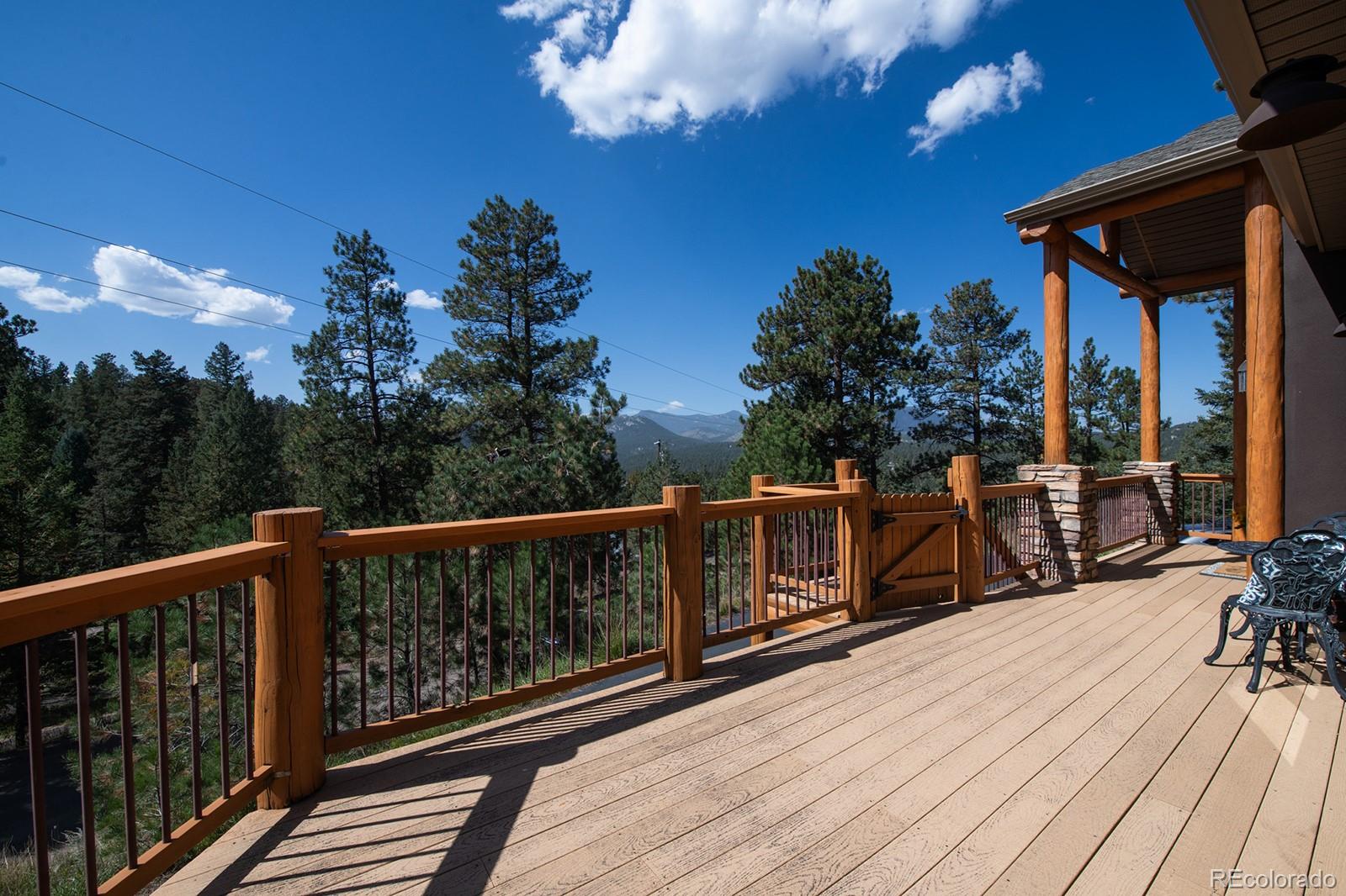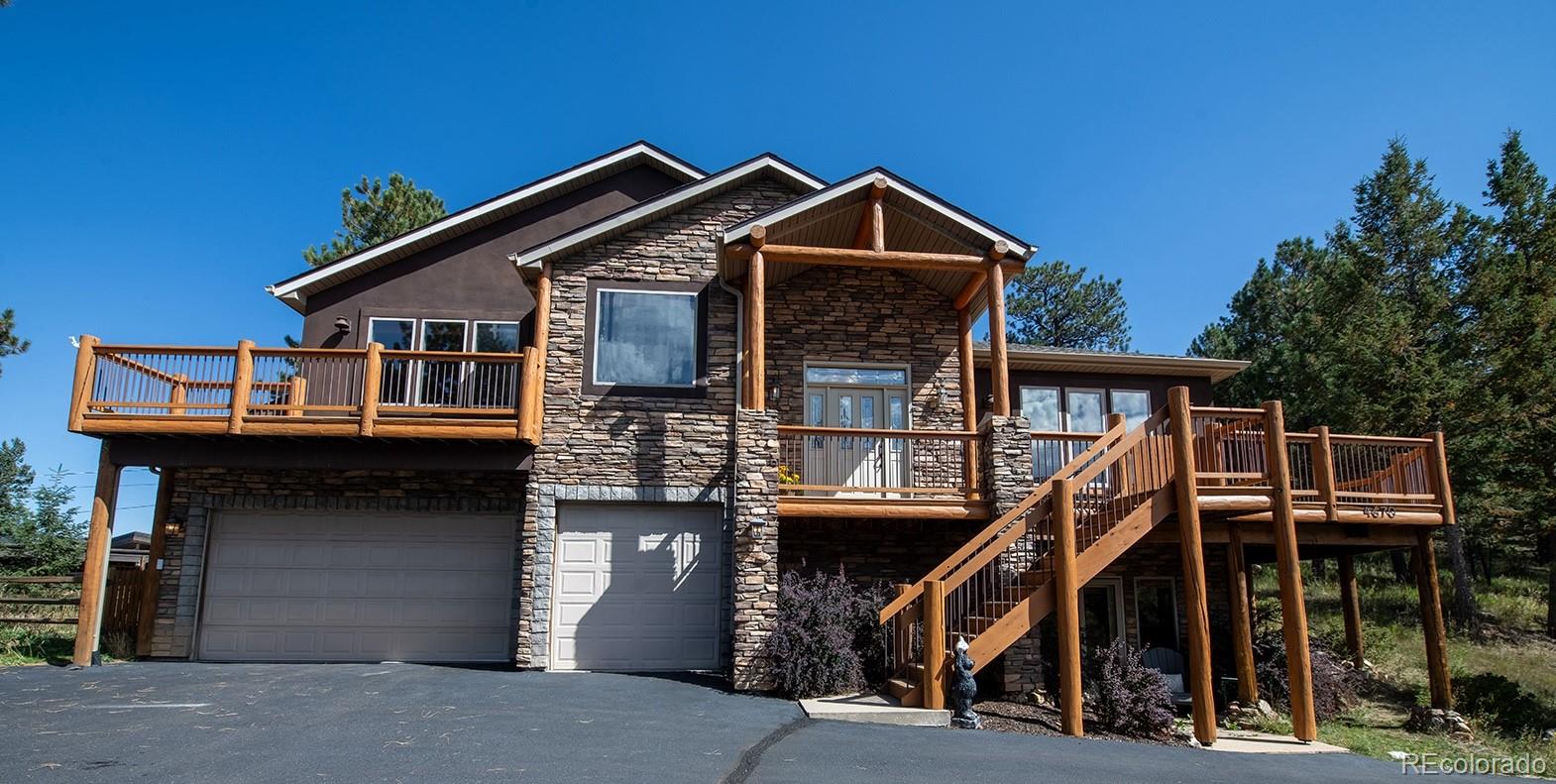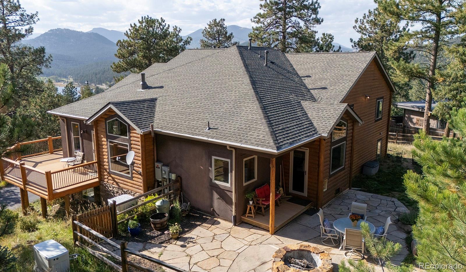 Welcome to the dream home you have been waiting for in Evergreen! This tranquil retreat boasts breathtaking mountain views and is just 5 minutes from the heart of Downtown Evergreen and Evergreen Lake, perfect for enjoying the best of both nature and town life. Sit on your front deck and enjoy a cup of coffee and views, or head inside this beautifully updated home and cozy up next to the stunning stone gas fireplace. The vaulted dining room invites dinner parties, while the spacious open kitchen and living room provide views from every corner. Upstairs, the primary suite is a true sanctuary, complete with a private deck, a cozy seating area, and another gas fireplace. Indulge in the luxurious jetted soaker tub and enjoy the convenience of two walk-in closets. This level also includes laundry facilities and two additional bedrooms with a full bathroom, thoughtfully designed for comfort and privacy. The lower level is versatile, offering an extra bedroom, a bonus exercise or office space, and another full bathroom. With large windows in the walkout basement, you can transform this space into a family or media room, endless possibilities await! Step outside to discover a huge walkout patio, a cozy seating area among the trees that overlooks the home and mountains, and multiple decks, perfect for embracing the Colorado lifestyle and enjoying the local wildlife. This is Evergreen...and you are going to LOVE living here!