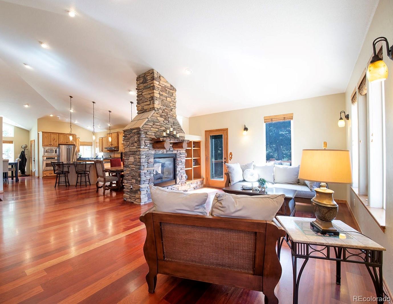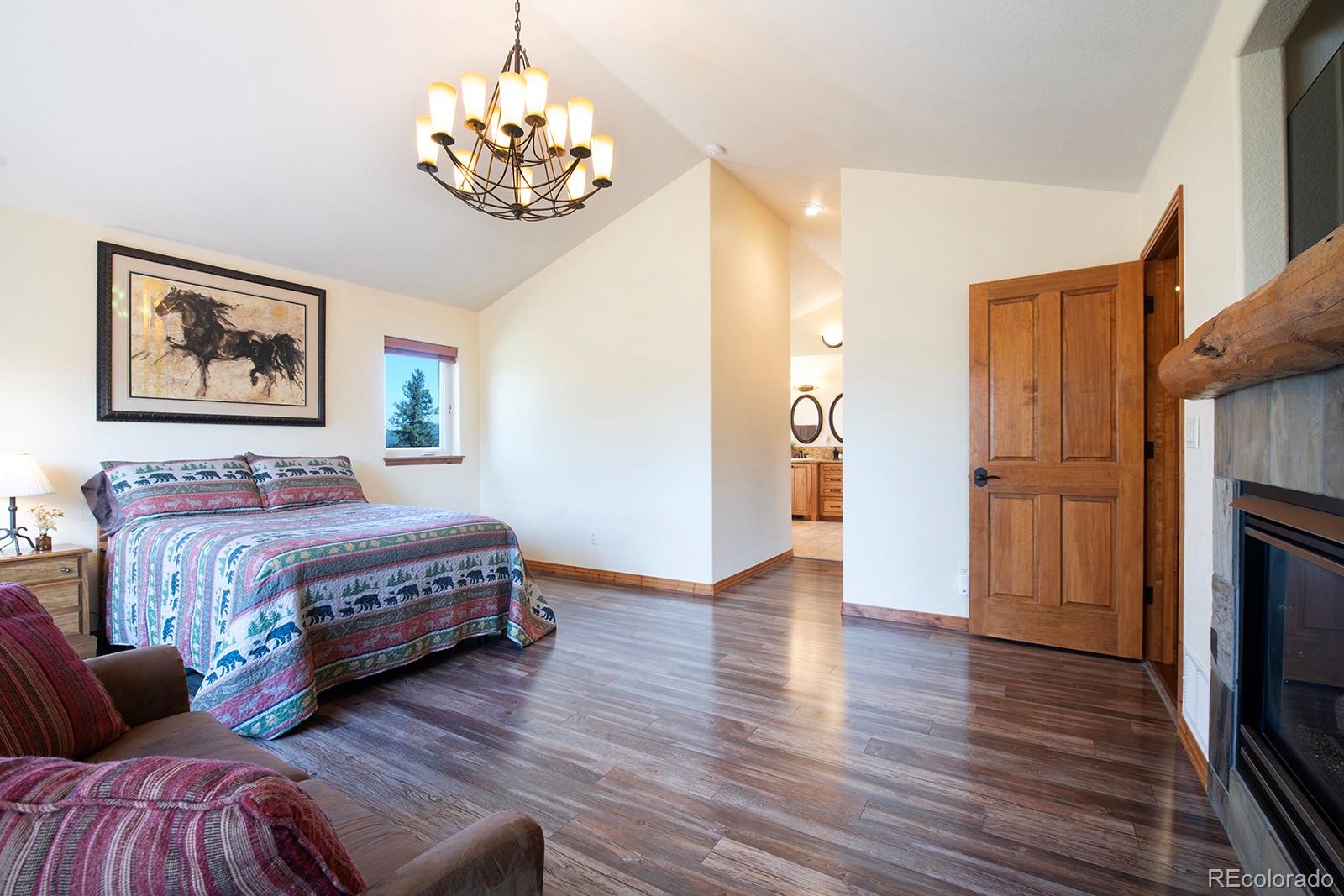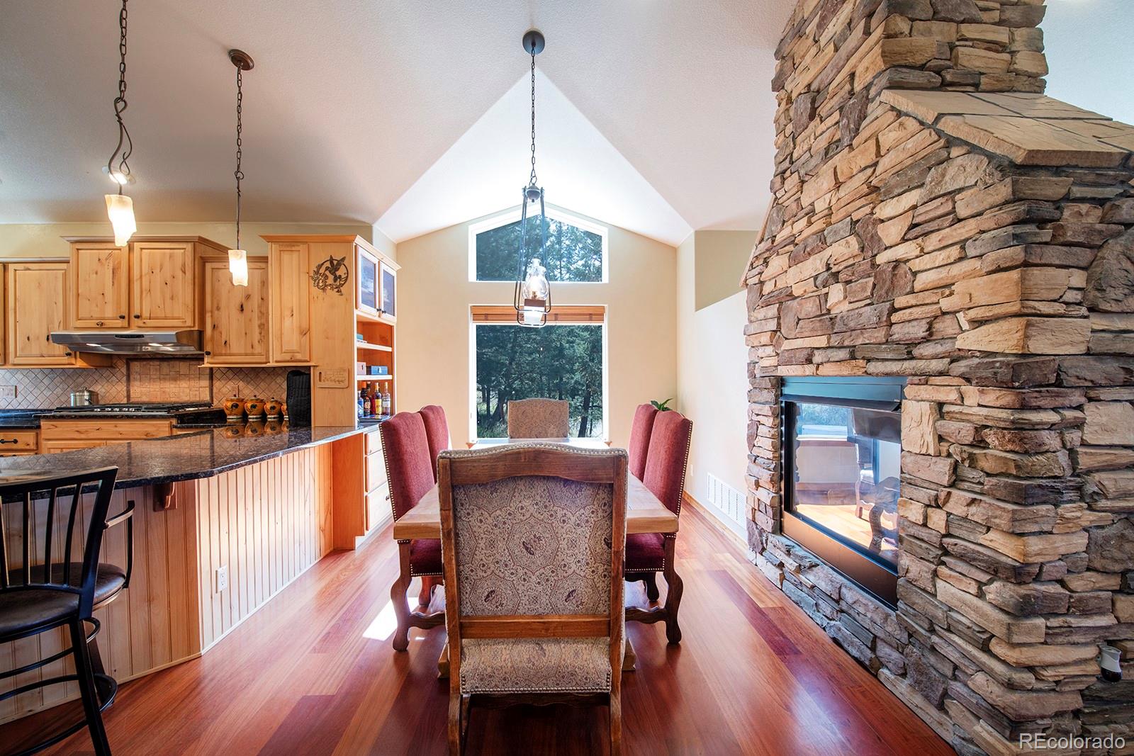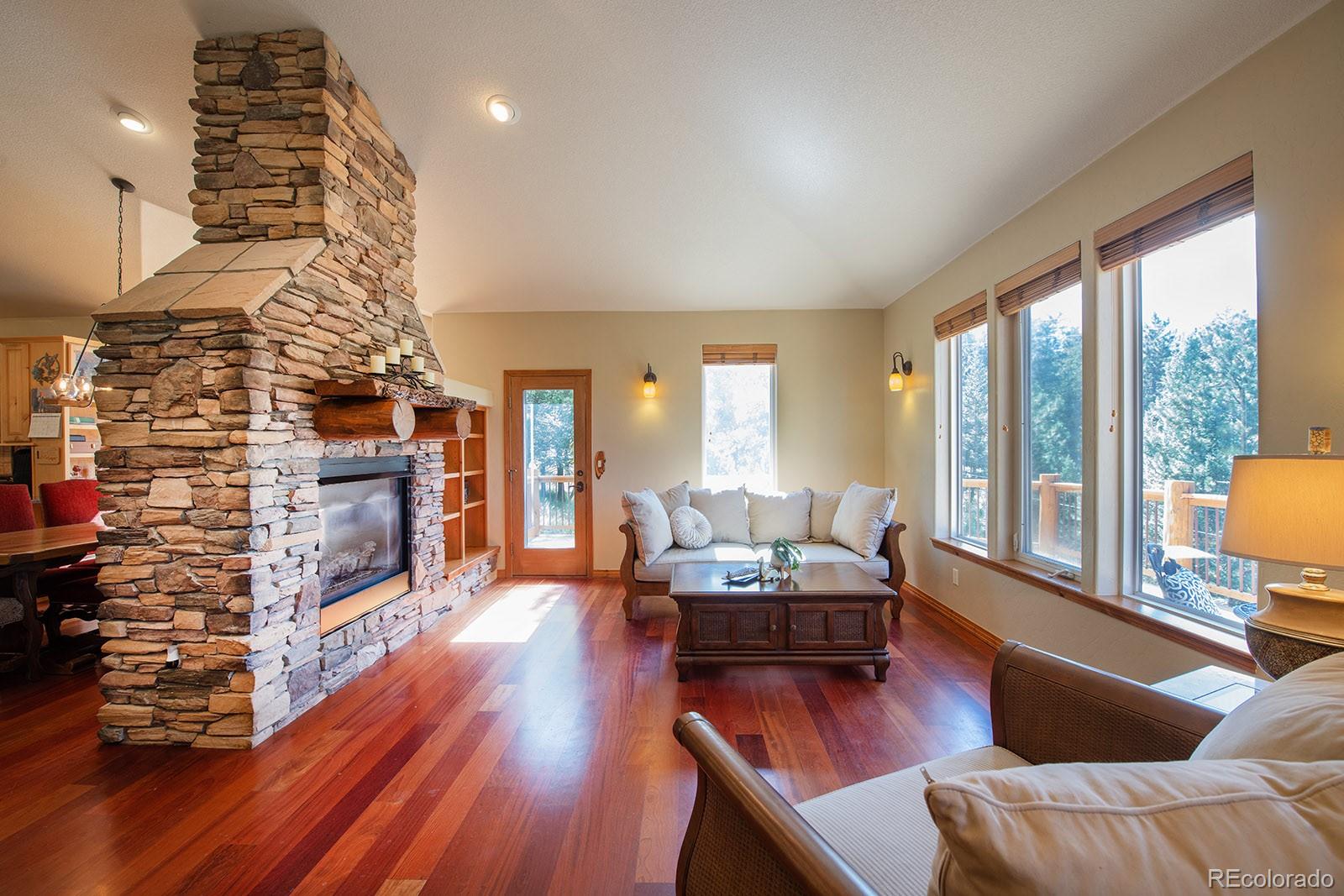 Welcome to the dream home you have been waiting for in Evergreen! This tranquil retreat boasts breathtaking mountain views and is just 5 minutes from the heart of Downtown Evergreen and Evergreen Lake, perfect for enjoying the best of both nature and town life. Sit on your front deck and enjoy a cup of coffee and views, or head inside this beautifully updated home and cozy up next to the stunning stone gas fireplace. The vaulted dining room invites dinner parties, while the spacious open kitchen and living room provide views from every corner. Upstairs, the primary suite is a true sanctuary, complete with a private deck, a cozy seating area, and another gas fireplace. Indulge in the luxurious jetted soaker tub and enjoy the convenience of two walk-in closets. This level also includes laundry facilities and two additional bedrooms with a full bathroom, thoughtfully designed for comfort and privacy. The lower level is versatile, offering an extra bedroom, a bonus exercise or office space, and another full bathroom. With large windows in the walkout basement, you can transform this space into a family or media room, endless possibilities await! Step outside to discover a huge walkout patio, a cozy seating area among the trees that overlooks the home and mountains, and multiple decks, perfect for embracing the Colorado lifestyle and enjoying the local wildlife. This is Evergreen...and you are going to LOVE living here!
