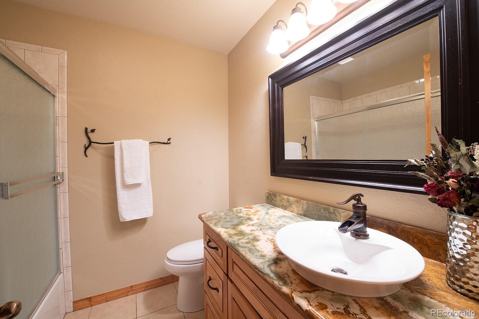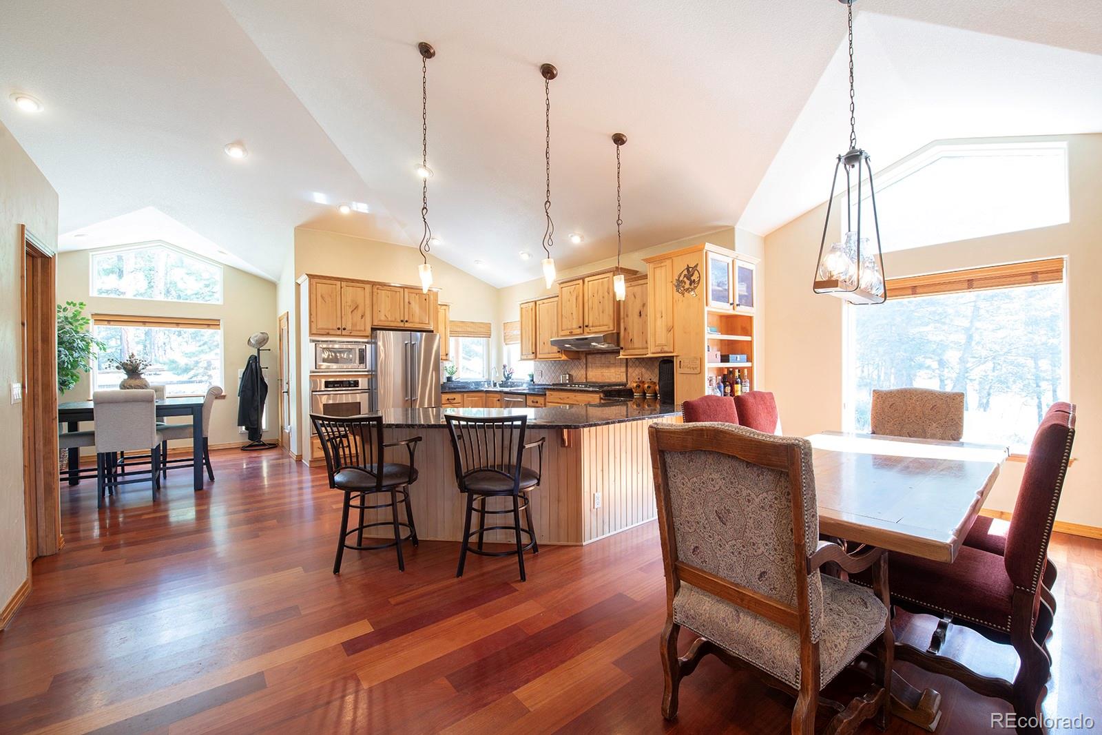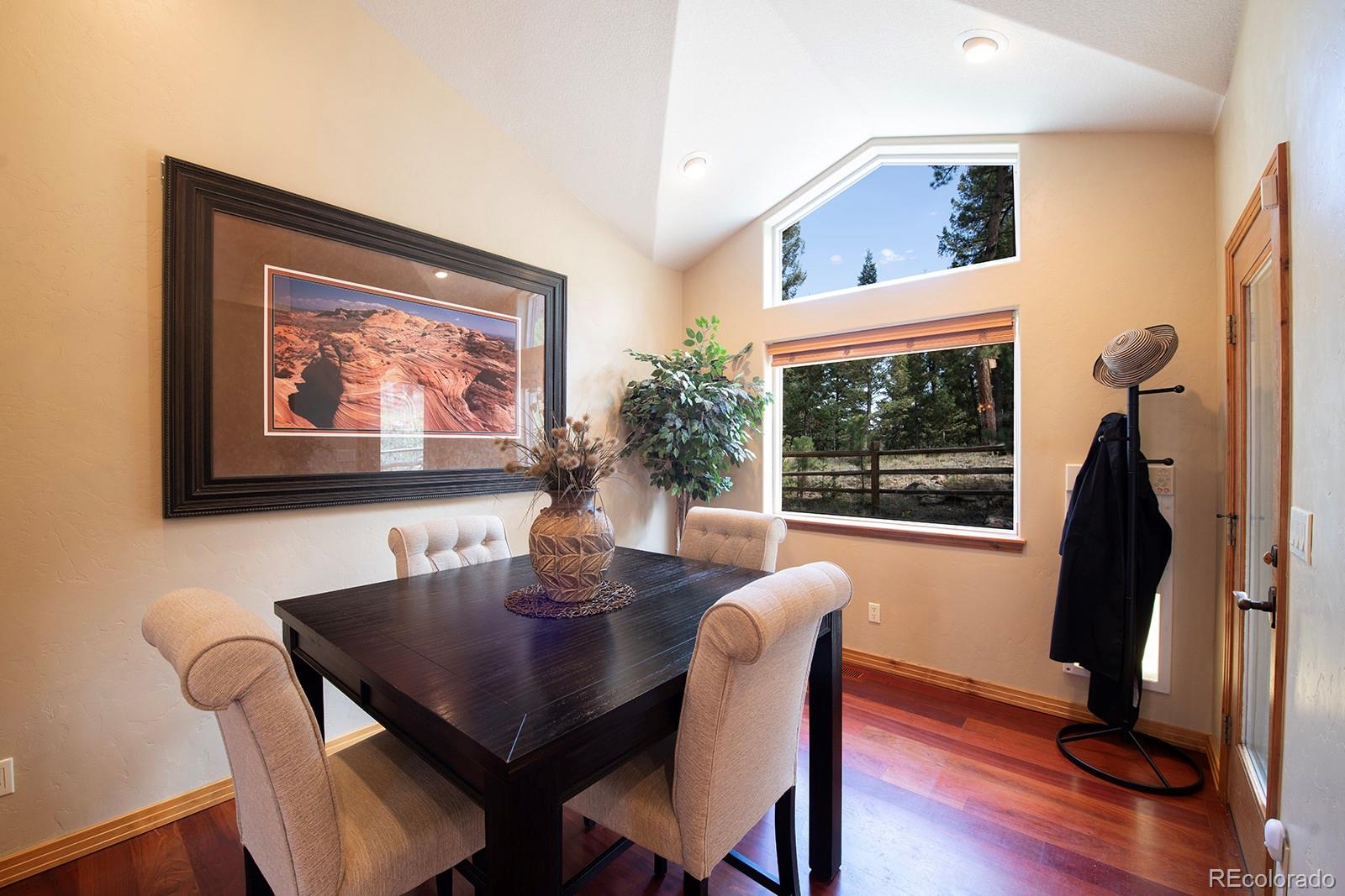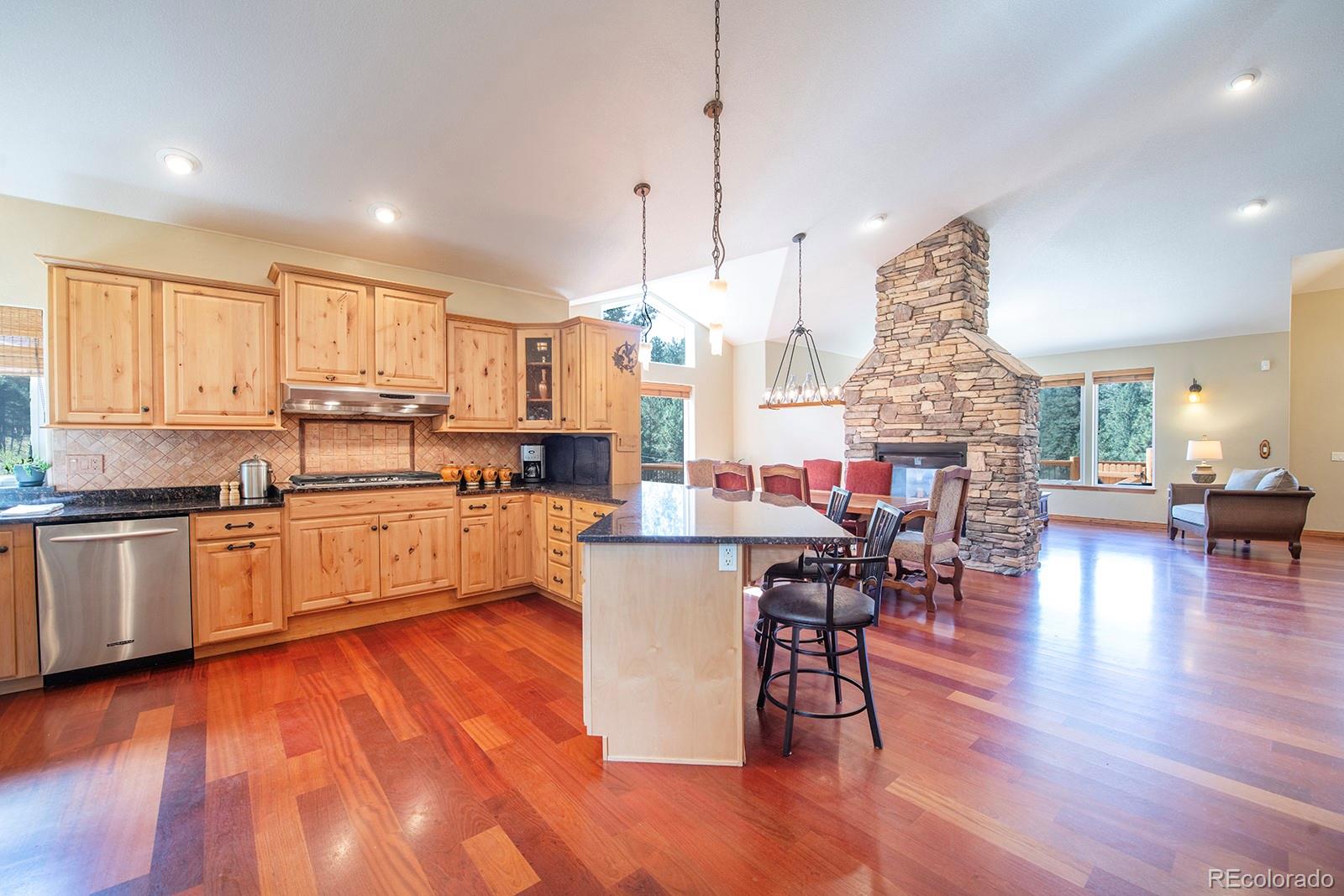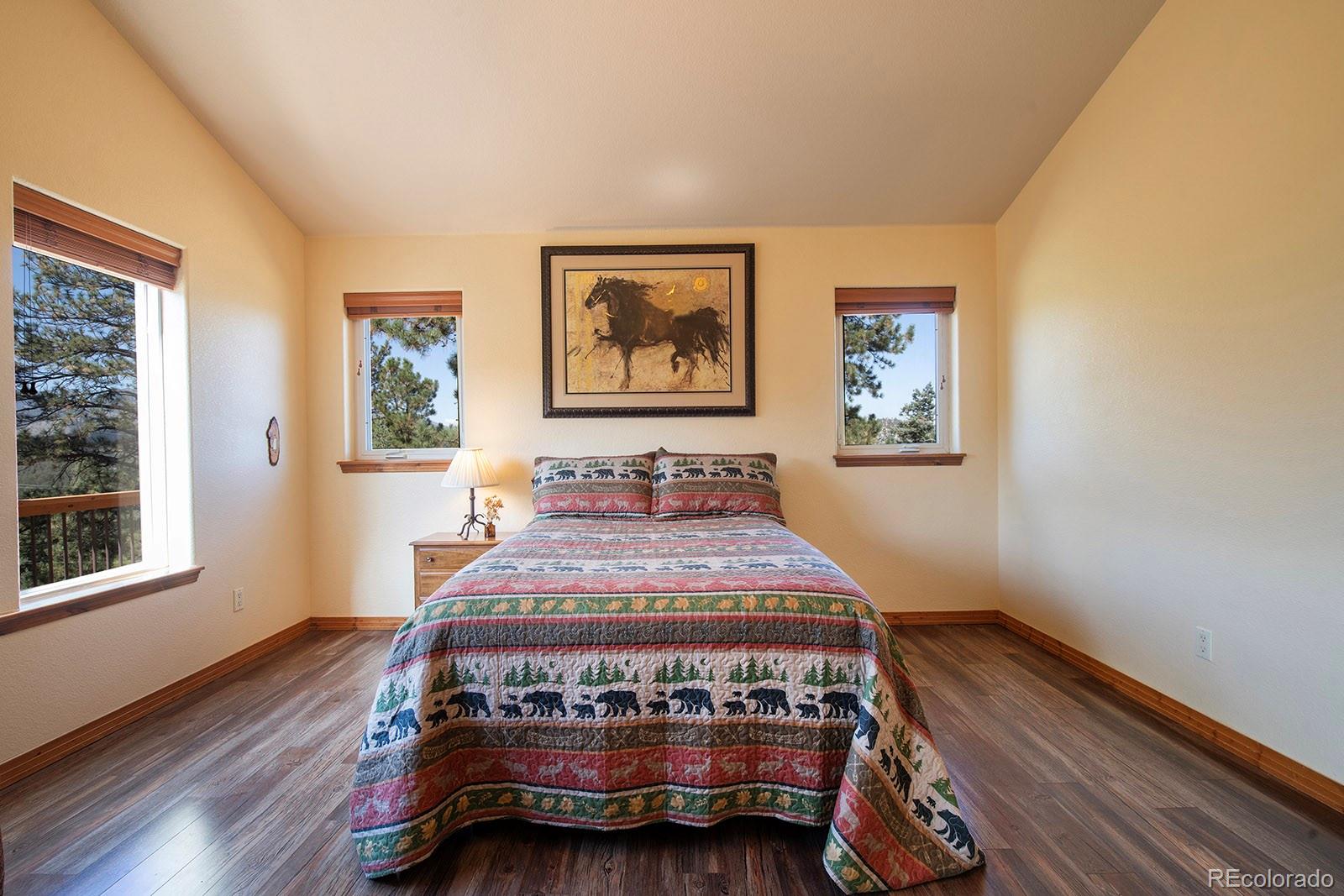 Welcome to the dream home you have been waiting for in Evergreen! This tranquil retreat boasts breathtaking mountain views and is just 5 minutes from the heart of Downtown Evergreen and Evergreen Lake, perfect for enjoying the best of both nature and town life. Sit on your front deck and enjoy a cup of coffee and views, or head inside this beautifully updated home and cozy up next to the stunning stone gas fireplace. The vaulted dining room invites dinner parties, while the spacious open kitchen and living room provide views from every corner. Upstairs, the primary suite is a true sanctuary, complete with a private deck, a cozy seating area, and another gas fireplace. Indulge in the luxurious jetted soaker tub and enjoy the convenience of two walk-in closets. This level also includes laundry facilities and two additional bedrooms with a full bathroom, thoughtfully designed for comfort and privacy. The lower level is versatile, offering an extra bedroom, a bonus exercise or office space, and another full bathroom. With large windows in the walkout basement, you can transform this space into a family or media room, endless possibilities await! Step outside to discover a huge walkout patio, a cozy seating area among the trees that overlooks the home and mountains, and multiple decks, perfect for embracing the Colorado lifestyle and enjoying the local wildlife. This is Evergreen...and you are going to LOVE living here!
